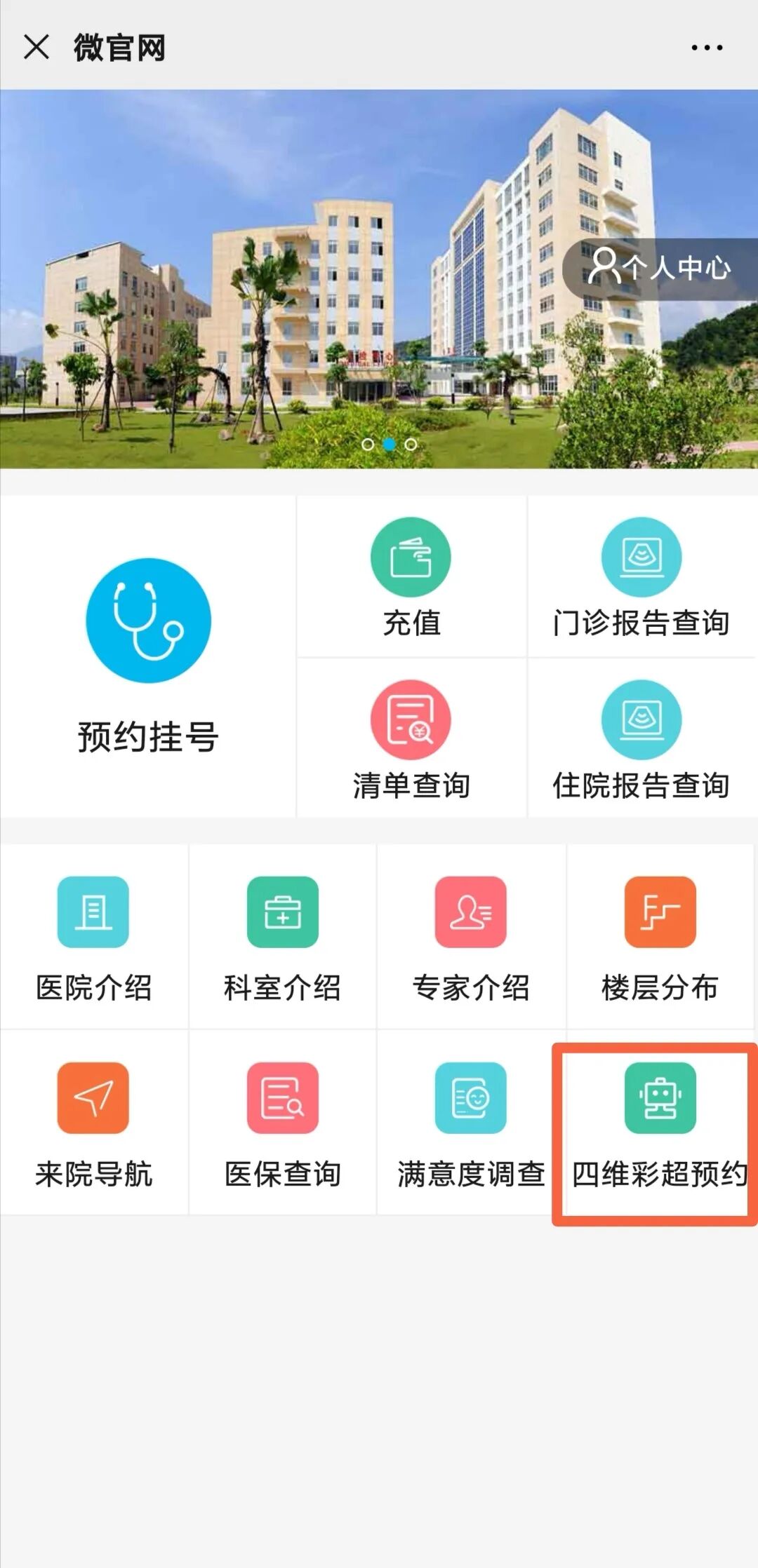 点击【门诊服务】-【更多服务】-【四维彩超预约】