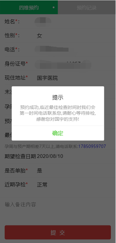 提交后,如下图所示,即您已预约成功。